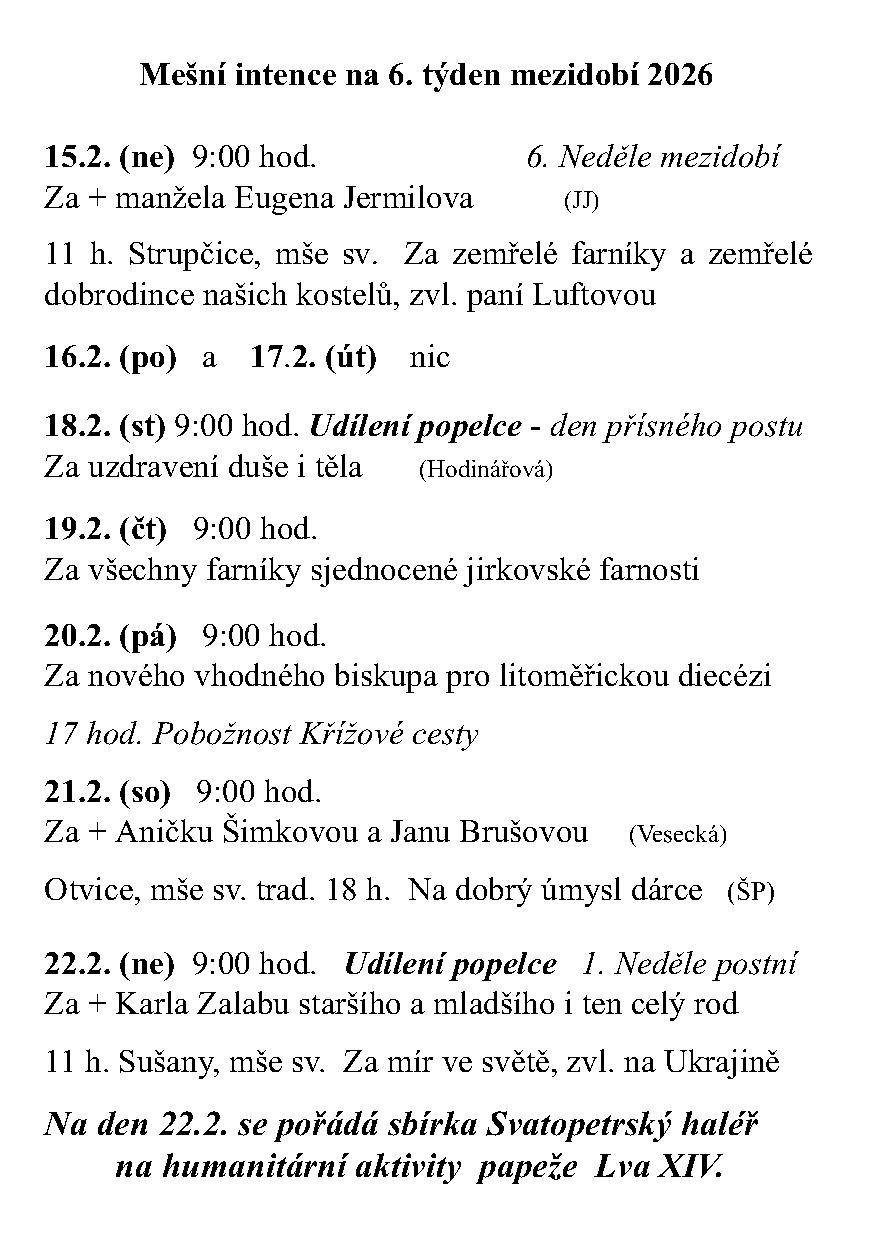 BOHOSLUŽBY V JIRKOVSKÝCH DOMOVECH S PEČOVATELSKOU SLUŽBOU PODLE AKTUÁLNÍCH OHLÁŠEK.